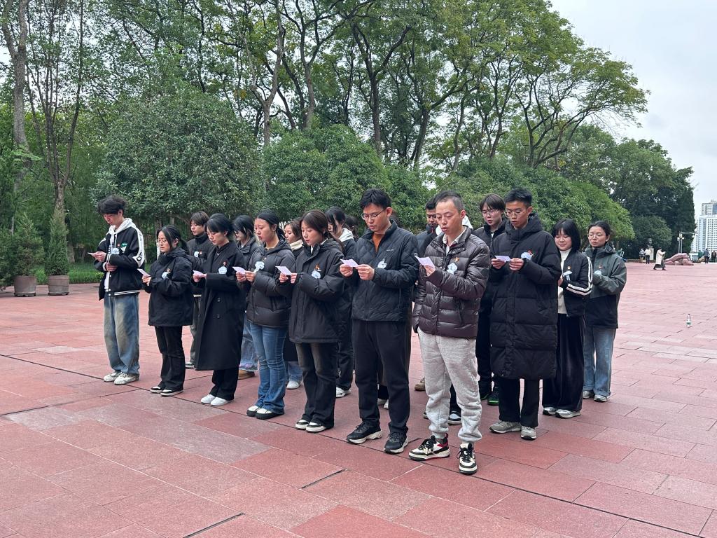 2024年11月27日智慧康养学院党站、团学全体骨干及入党积极分子,在支部委员张敏老师、支部委员丛拯中老师和高新毅老师的带领下来到烈士墓开展“行走的思政课”—“传承红色基因,赓续红色血脉”主题教育活动。