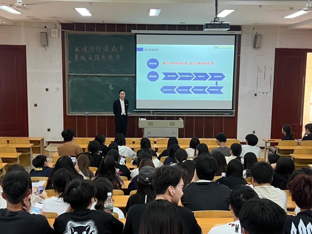 宣讲会上,重庆里格假日国际酒店企业人事经理讲解内容全面细致,从酒店的深厚背景、高端定位、特色服务、到各部门的运营模式,再到员工职业发展路径及岗位需求、实习薪资、企业培训和晋升体系等都进行了深入且详细的阐述,分享了酒店人的职业发展轨迹,给大家留下了深刻的印象;用实际事例为同学们勾勒出清晰的职业发展路径,让大家对即将到来的岗位实习充满信心,现场氛围热烈而有序。