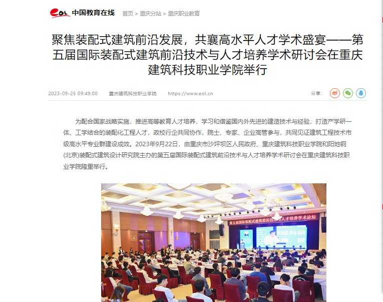 【中国教育在线】聚焦装配式建筑前沿发展,共襄高水平人才学术盛宴——第五届国际装配式建筑前沿技术与人才培养学术研讨会在重庆建筑科技职业学院举行