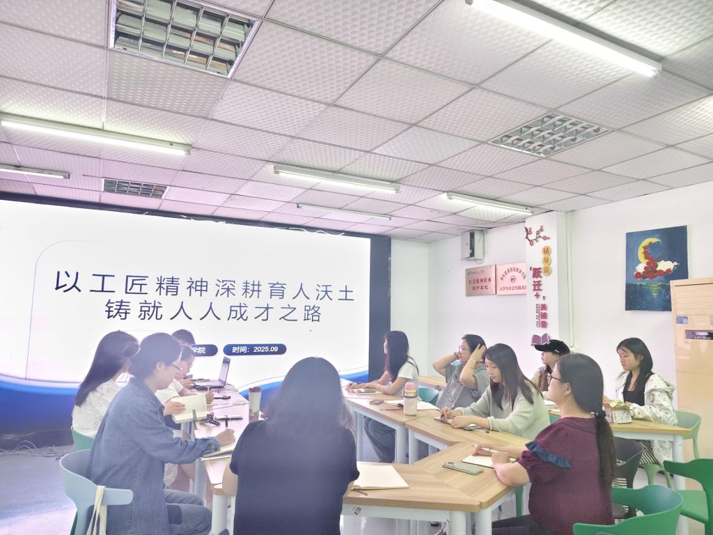 工匠精神是工匠对产品的精雕细琢,可我们这群“学生成长工程师”,又该如何以工匠精神深耕育人沃土,为每个学生铺就成才之路?为此辅导员“跃迁+”发展共读会于2025年9月29日晚八点在一站式中心举行。本次共读会丛拯中老师主持,学工部副部长周玟瑾、值班书记殷源及各二级学院辅导员共同参与。