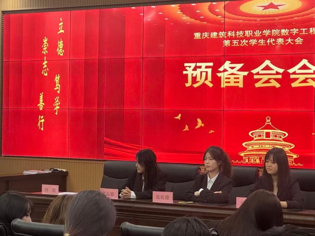 为充分发扬学生民主自治精神,凝聚学生智慧与力量,重庆建筑科技职业学院数字工程学院第五次学生代表大会预备会会议于10月9日在大数据中心隆重召开。本次大会聚焦学生成长与学院发展,正式代表们齐聚一堂,共商学生工作发展大计。