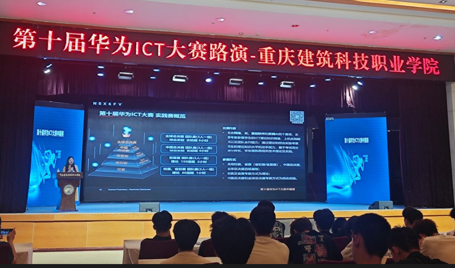 近日,第十届华为 ICT 大赛重庆建筑科技职业学院站启幕,作为该校与讯方技术深化校企共建、推进产教融合的实践,赛事以 “以赛促教、以赛促学” 为核心,吸引数字工程学院 24 级、25 级学员参与,为学子搭建技能平台;活动伊始,讯方技术班主任刘和明主持开场,介绍大赛行业影响力,强调其契合企业岗位需求、是校企协同育人载体,能衔接课堂理论与企业实践,点燃现场热情。