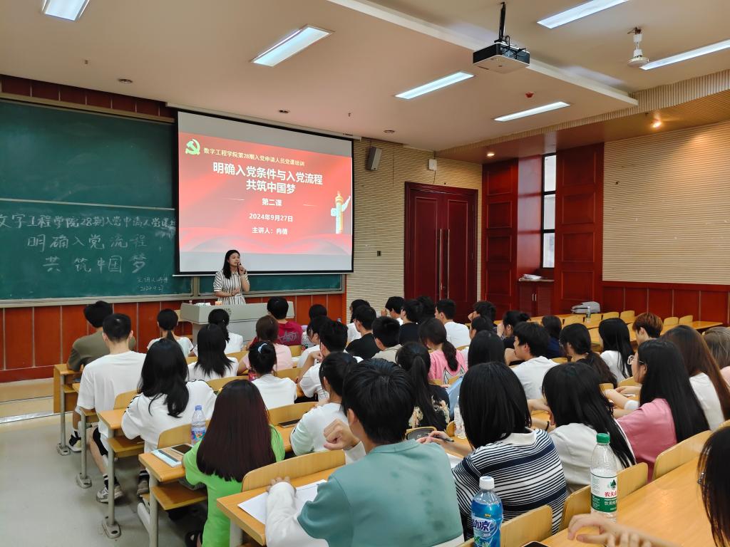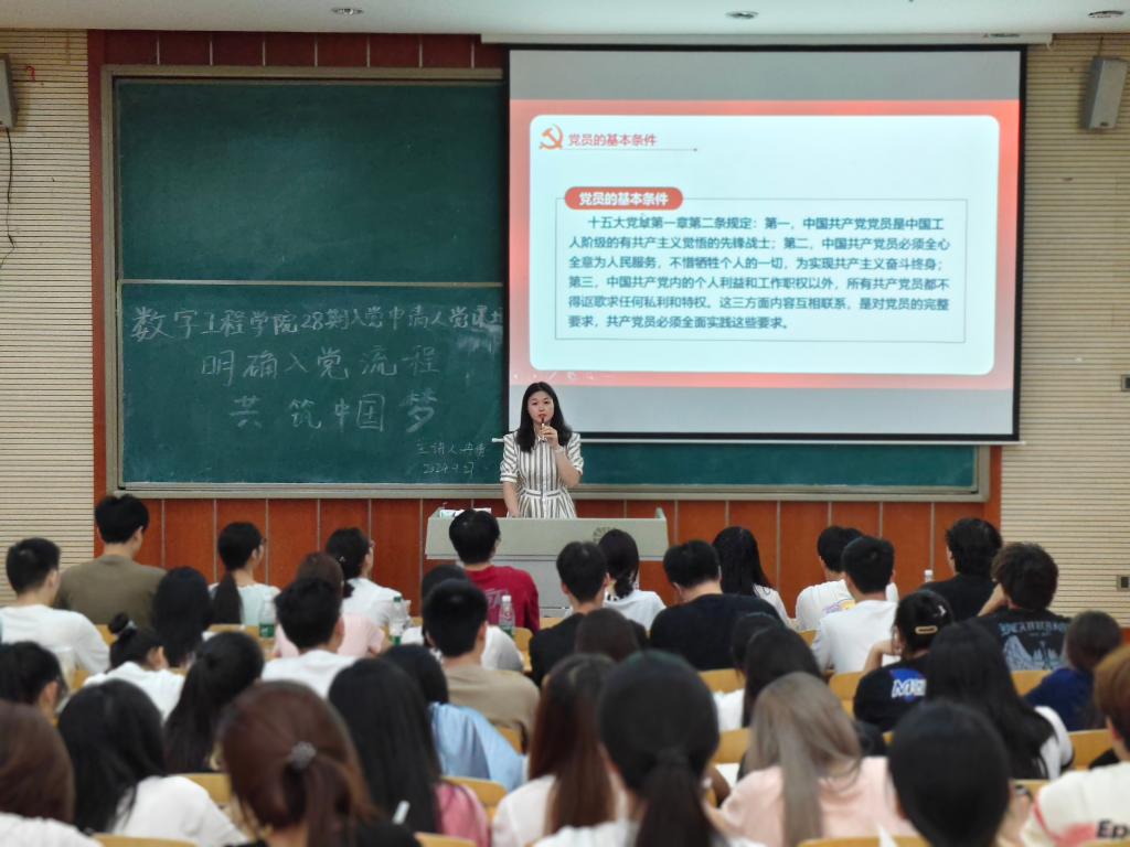 2024年9月27日12:30,重庆建筑科技职业学院数字工程学院党支部第28期入党申请人党课培训在笃学楼1205教室顺利举行。本次党课由数字工程学院冉倩老师主讲,主题为“明确入党条件与流程,共筑中国梦”,旨在确保入党申请人具备基本的政治觉悟、思想觉悟和组织纪律性,从而为党的队伍注入新鲜血液,保持党的先进性和战斗力。